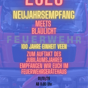 Der Neujahrsempfang in Veen hat eine besondere Tradition. Zum Start in das Jubiläumsjahr 2026 richtet die Einheit Veen am 01. Januar 2026 diesen Empfang im Gerätehaus am Halfmannsweg aus.
