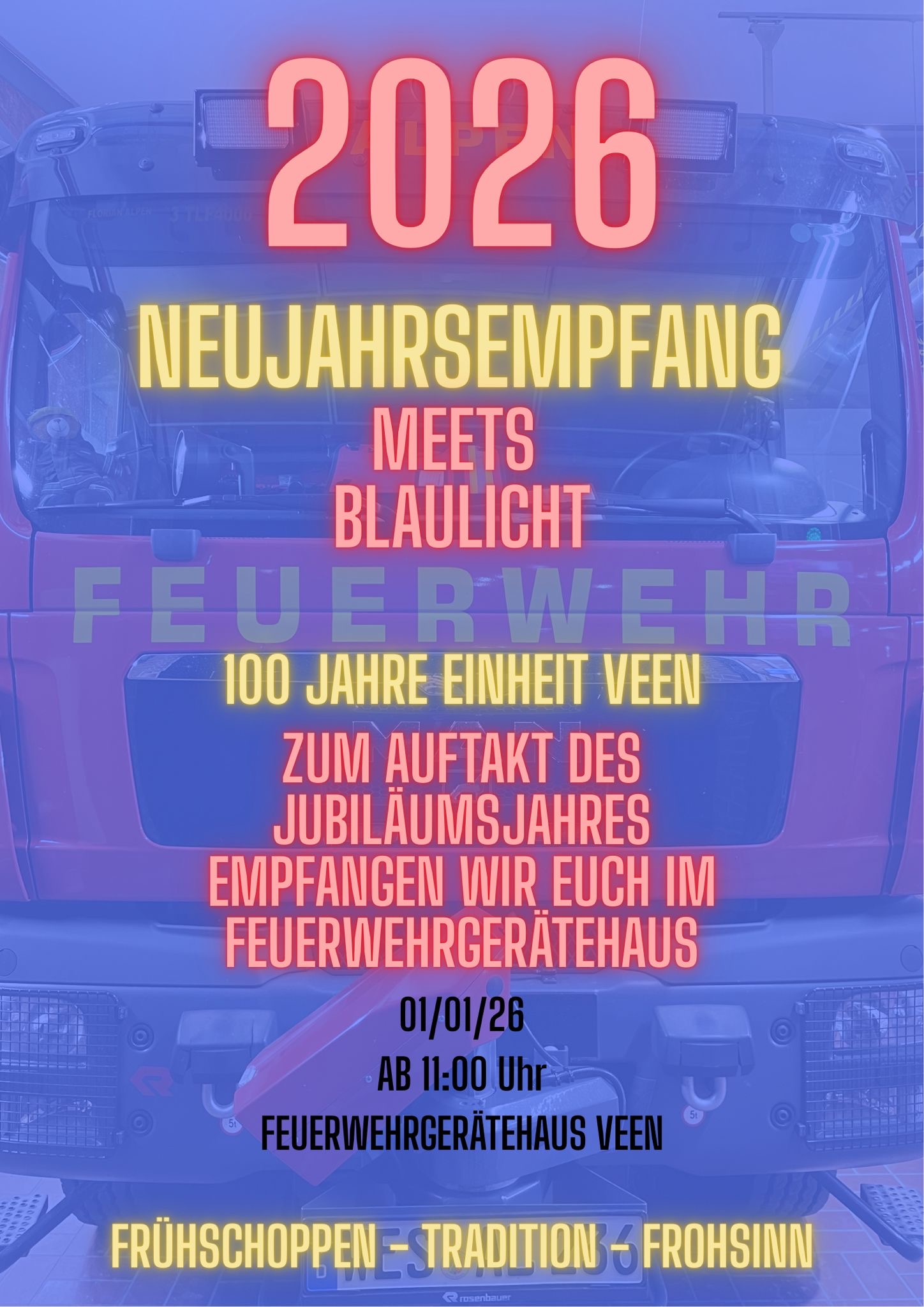Ab 11:00 Uhr begrüßen die Kameraden der Einheit Veen dann alle Gäste, um gemeinsam in das Jahr 2026 zu starten.