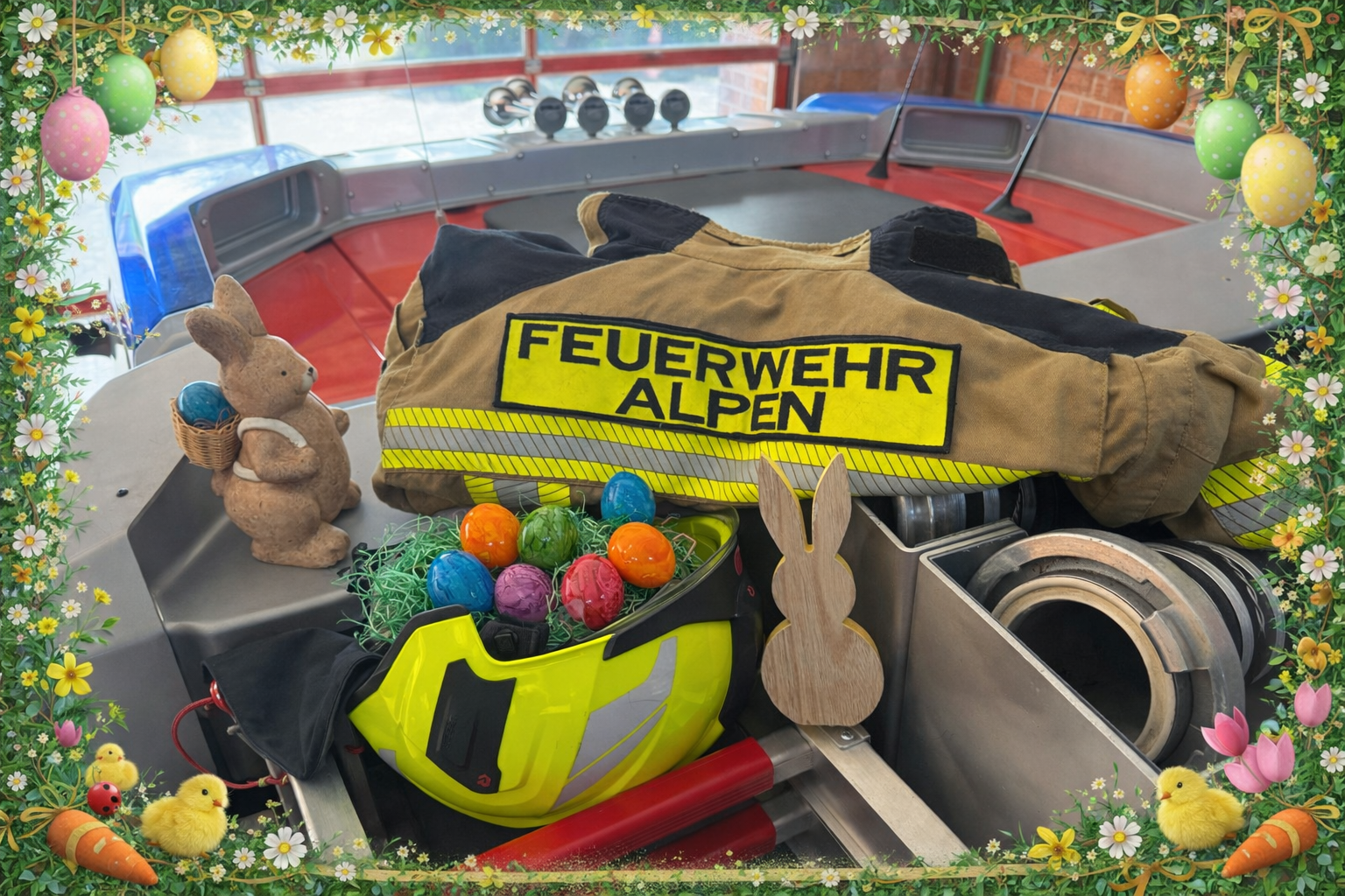 Die Freiwillige Feuerwehr Alpen 🚒 wünscht allen Bürgerinnen- und Bürger 👫 ein schönes und sicheres 🐇Osterfest! 🥚